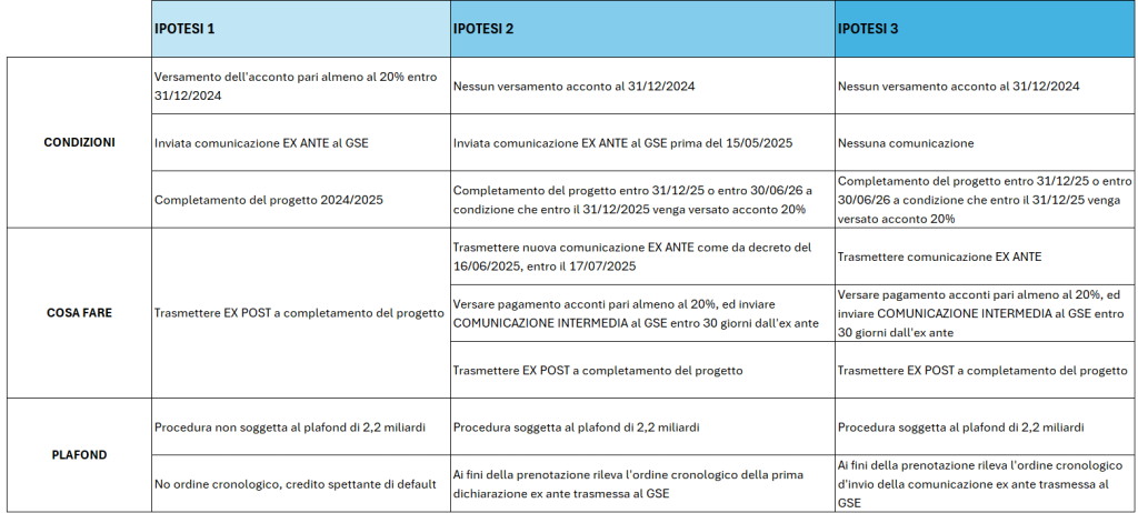 In particolare, nel caso si configuri l’ipotesi 3, vi invitiamo a segnalarci tempestivamente i nuovi investimenti previsti per il 2025, al fine di poter inviare in tempo utile la comunicazione ex ante al GSE.